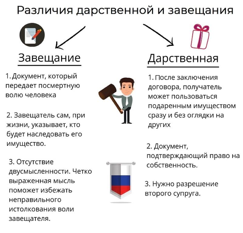 Ряд сделок подразумевают исполнение обязательств для обеих сторон. Дарение и наследование отличаются тем, что отчуждение имущества происходит безвозмездно. Завещание и дарственная обладают плюсами и минусами, которые целесообразно оценить заранее.