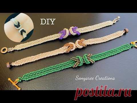 Knotted Bracelet || Celtic Knot Beaded bracelet || woven herringbone bracelet