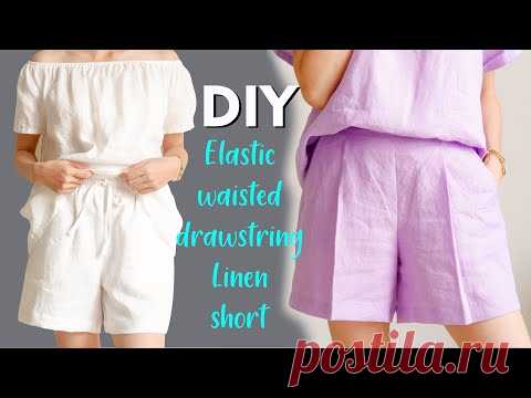 (63) DIY Elastic Waisted Drawstring Linen Shorts | How To Make A Short - YouTube