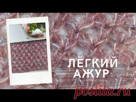 Простой ажурный узор спицами. Легкий ажур для свитеров-паутинок из мохера. Ажурный узор спицами