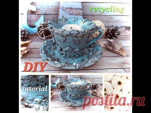 DIY Candlestick Vintage Recyclé, Подсвечник Чашка. Не выбрасывайте Битую Посуду,Candelabro Reciclado