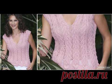 Топ- майка с V- образной горловиной, красивой каймой и простым эффектным узором.