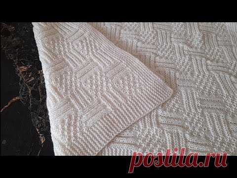 Двухсторонний детский плед лёгким узором/Подробное видео-описание+МК на узор спицами