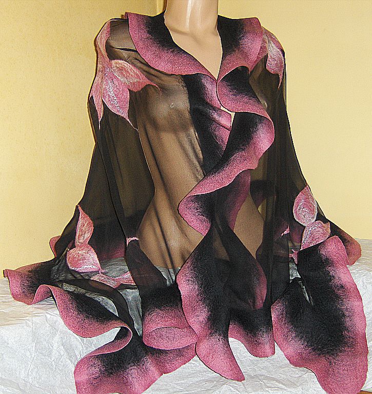 Вечерний нуно-палантин из 100% шерсти на натуральном шифоне.
