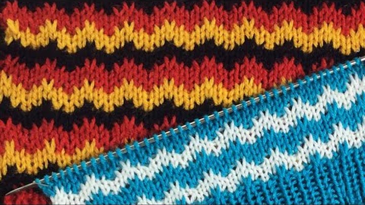 Цветные шевроны / 2 или 3 цвета / Вязание спицами.