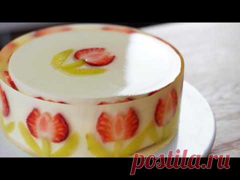 Красивый торт с фруктовым желе / 🌷 На торте распустились цветы тюльпана. / Торт Зебра / Мерная чашка