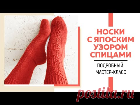 НОСКИ СПИЦАМИ С ЯПОНСКИМ УЗОРОМ || Пятка в форме сердца || Ленточный мысок || Подробный мастер-класс