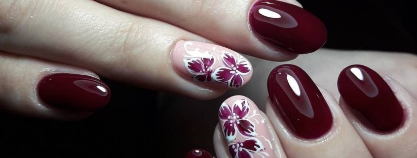 Бордовый маникюр с цветами: 100 фото красивых идей дизайна