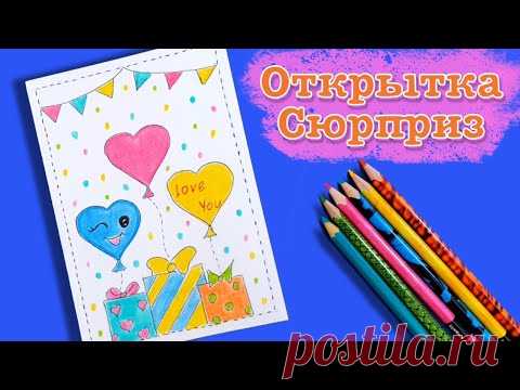 Открытка воздушные шары. Как сделать красивую открытку сюрприз. How to make a beautiful postcard