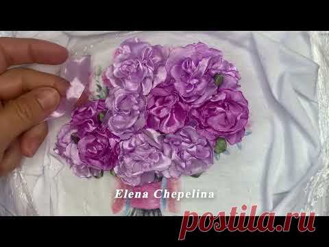 Как украсить футболку цветами из атласных лент своими руками.