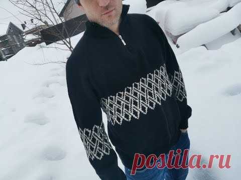 Мужской свитер на молнии. Реглан сверху. Свитер с жаккардовым узором.