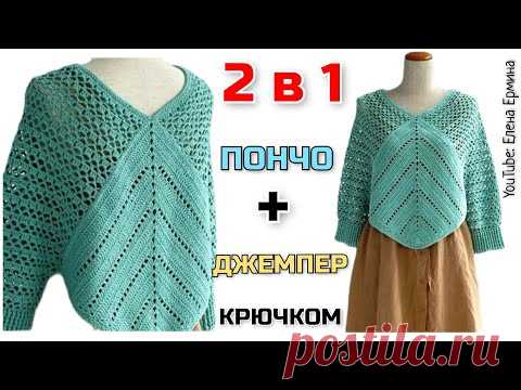 🔥Вяжу сейчас 👍классную вещицу 2 в 1: ДЖЕМПЕР + ПОНЧО крючком. Как ВАМ? А ВЫ со мной?