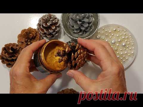 КРАСИВЕННО-ГЛАЗ НЕ ОТОРВАТЬ!МАКАЮ ШИШКИ в КРАСКУ!DIY ЛЕГКО! 3 cупер-идеи поделок из шишек-новый год/
