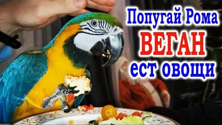 Говорящий попугай Ара ест овощи. Корм для попугая Ара. Что выберет попугай Рома ?