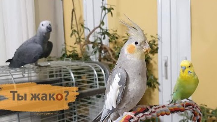 Прогулка попугаев волнистого, кореллы и.. жако тоже попросился 😛