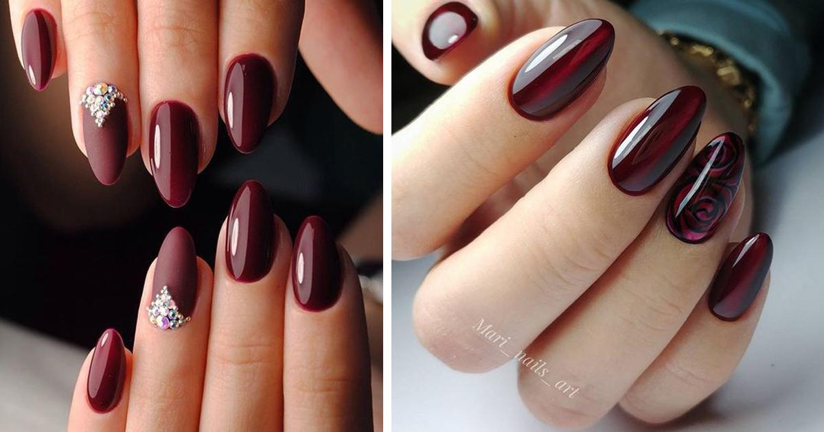 маникюр в бордовых тонах, дизайн ногтей в бордовом цвете, идеи