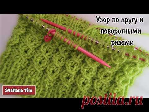 Узор Спицами по Кругу и Поворотными Рядами - Восьмерки или Обвитые Петли