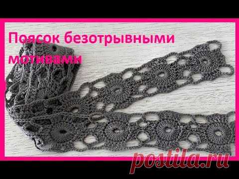 ПОЯСОК безотрывными МОТИВАМИ, Вязание КРЮЧКОМ , crochet sash (узор № 409)