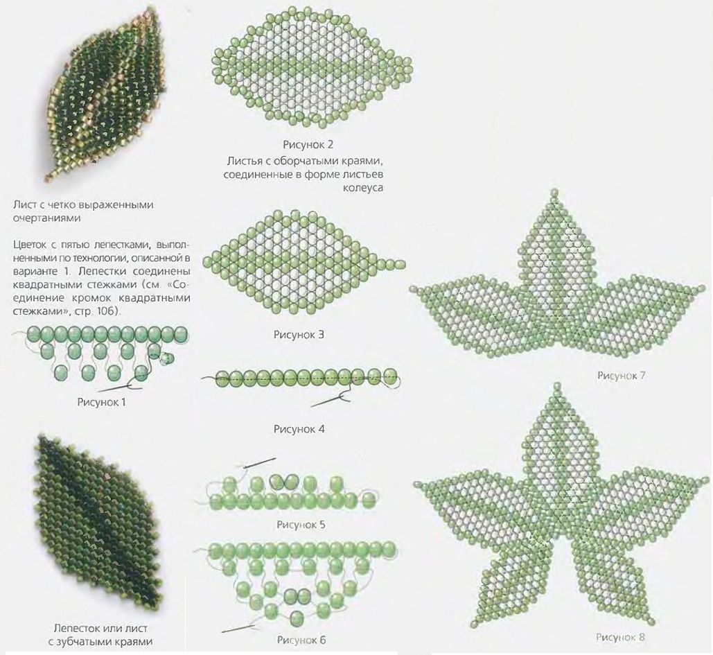 Листья из бисера схемы плетения Всё из бисера и о бисере плетём и вышиваем. Учимся плести и вышивать бисером, уроки и техники бисероплетения, мастер классы, схемы для вышивания бисером