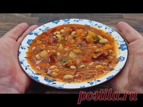 Густой суп с фасолью и колбасой, любимое блюдо испанских хозяек!