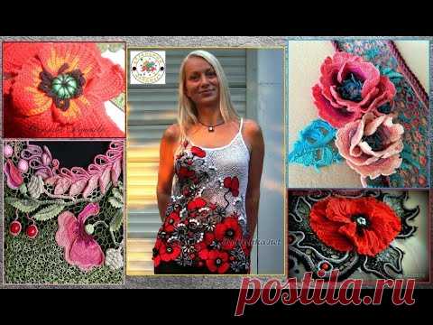 ИЗЯЩНЫЕ КРАСНЫЕ МАКИ В ИРЛАНДСКОМ КРУЖЕВЕ КРЮЧКОМ.