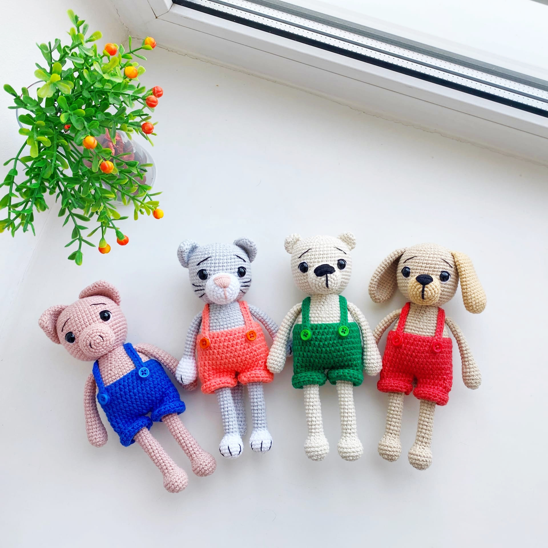 PDF Малыши в шортиках крючком. FREE crochet pattern; Аmigurumi animal patterns. Амигуруми схемы и описания на русском. Вязаные игрушки и поделки своими руками #amimore - собачка, щенок, собака, свинка, поросёнок, свинья, мишка, медведь, медвежонок, котик, кот, котёнок.