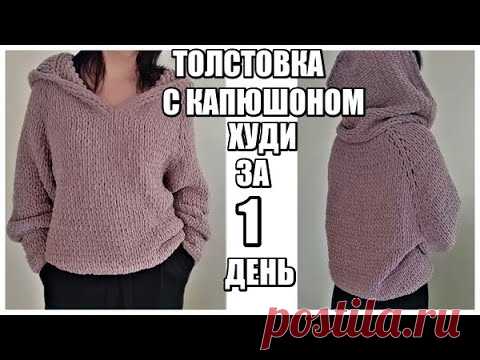 ЗА 1 ДЕНЬ СПРАВИТСЯ ШКОЛЬНИК.Свитер с капюшоном без крючка и спиц.Худи.Толстовка из Alize Puffy Fine