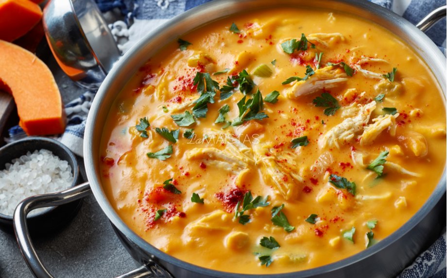 Soti vištienos ir moliūgų sriuba Kvapni, tiršta ir labai skani moliūgų sriuba su vištiena - sriuba labai soti, todėl puikiai tiks ne tik kaip sriuba, bet ir kaip pagrindinis patiekalas! Vištieną nuplauti, dėti į puodą ir užpilti vandeniu. Dėti pipirų, vieną nuluptą (nesmulkintą) svogūną, lauro lapus ir dvi