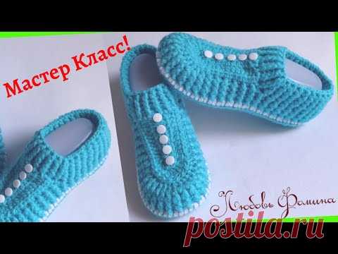 "Бирюзовые Облака"! Тапочки крючком Мастер класс Подошва.