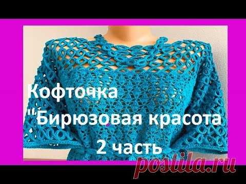 КОФТОЧКА "Бирюзовая красота " , 2ч , Вязание КРЮЧКОМ , crochet beautiful blouse ( В № 349)