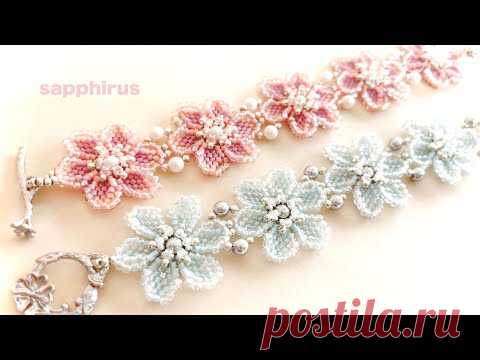 【ビーズステッチ中級】シードビーズで作るフラワーブレスレットの作り方☆両面使えるリバーシブル/ブリックステッチ/Beaded flower Bracelet/Tutorial/Brick stitch