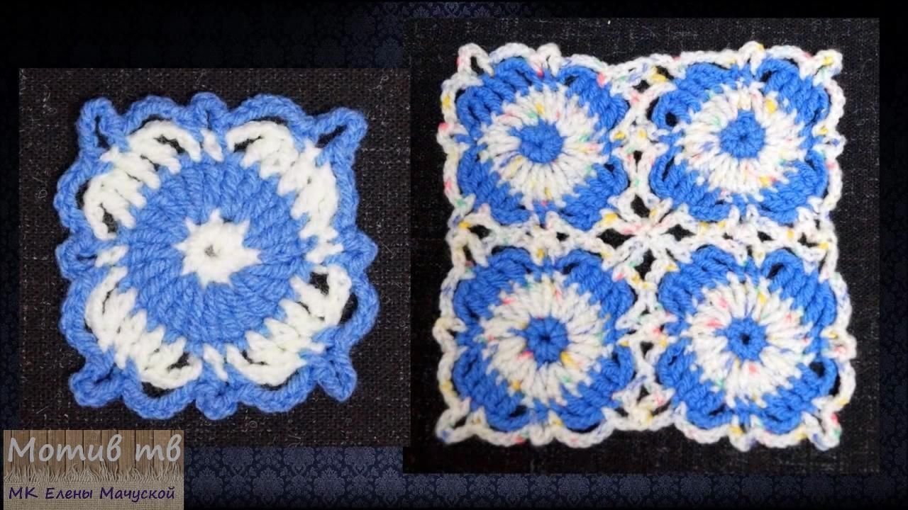Маленький цветной мотив для накидки или покрывала крючком | Мастерская вязания и рукоделия Елены... Этот маленький цветной мотив состоит всего из четырёх рядов, но смотрится очень нарядно. Подходит для вязания пледа, накидки на кресло или покрывала. В мастер классе есть не только пошаговая...