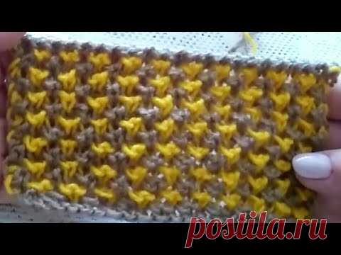 Ленивый жаккард спицами поворотными и круговыми рядами. 2 петли и 4 ряда.