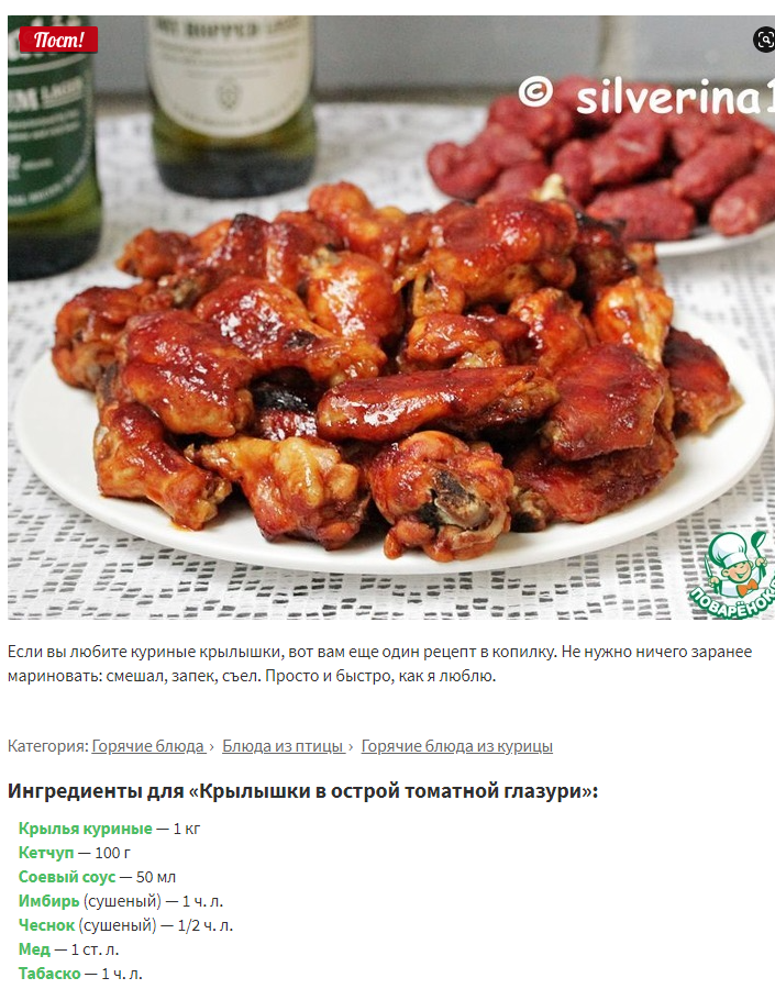Крылышки в острой томатной глазури – кулинарный рецепт Подробнее