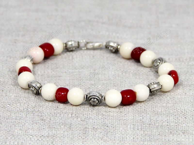 Браслет из белого и красного коралла с металлическими вставками от Nur