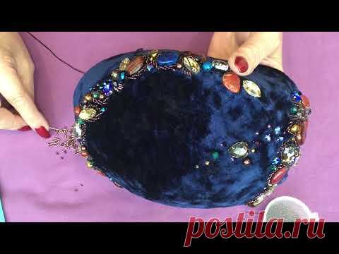 БАРХАТНАЯ ШАПОЧКА С ВЫШИВКОЙ КАМНЯМИ Гелла Чара