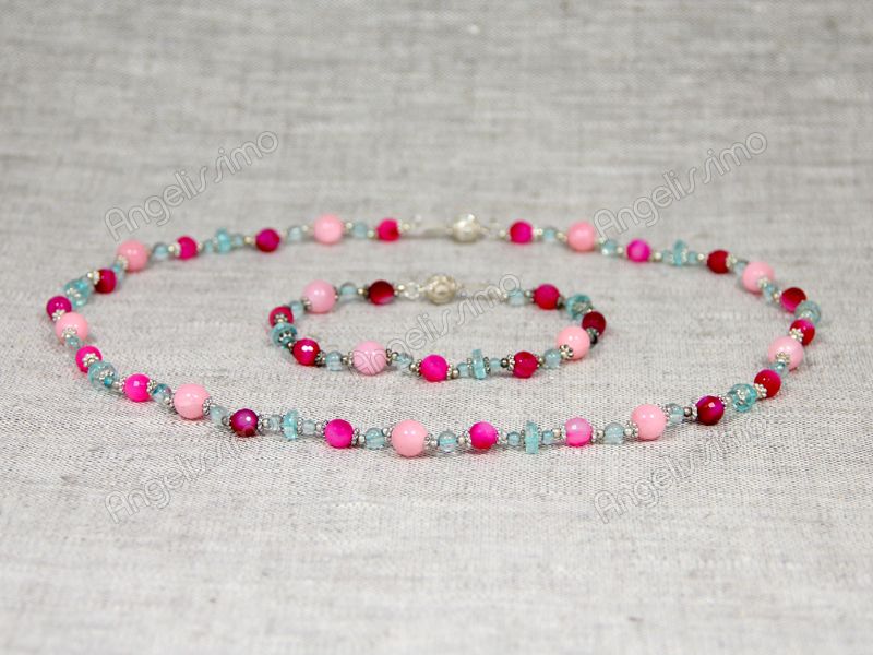 Комплект бусы и браслет из разных натуральных камней от Nur