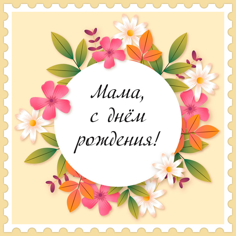 Открытка с цветами и словами мама, с днем рождения! Привет, я автор этой открытки Анна Кузнецова. Если вам понравилась картинка, то на сайте СанПик вы найдёте сотни открыток для WhatsApp и Viber на все случаи жизни моей работы.