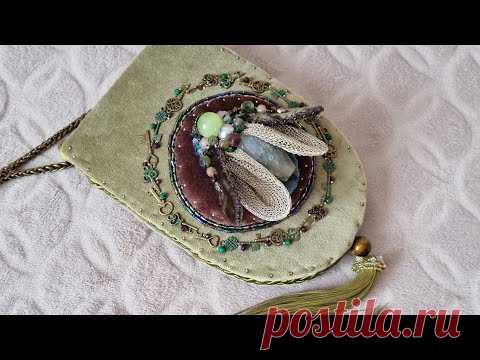 Шикарная сумочка из бархата с мотыльком #вышивка
