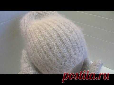 Из пуха норки - Двухсторонняя шапочка спицами с ажурной планкой и оригинальной макушкой