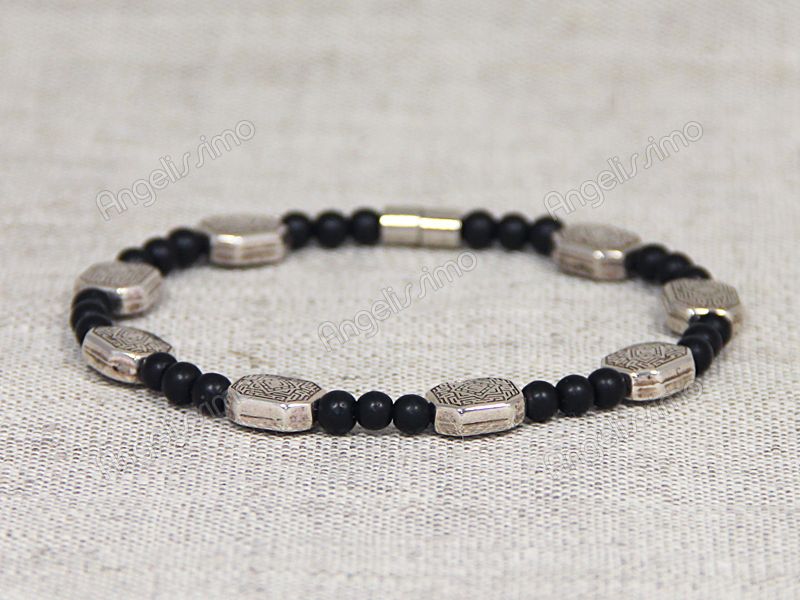 Браслет мужской/женский из шунгита с вставками серебряного цвета от Nur