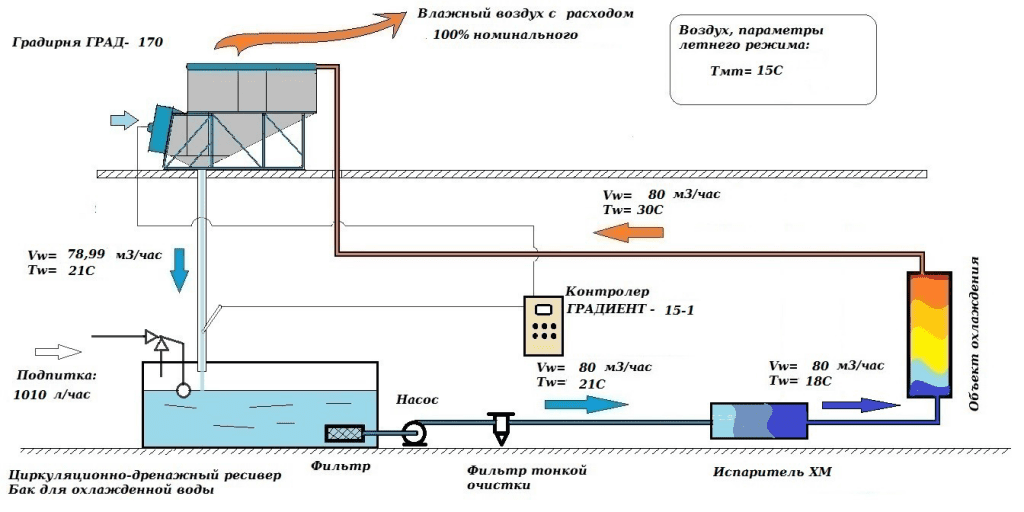 Потребление воды на охлаждение оборудования Заказчика составляет 23 м³/час (исходя из тех. задания Заказчика)