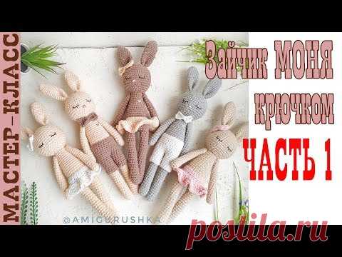 Игрушка амигуруми Длинноногий заяц Моня крючком Часть 1 Мастер класс
