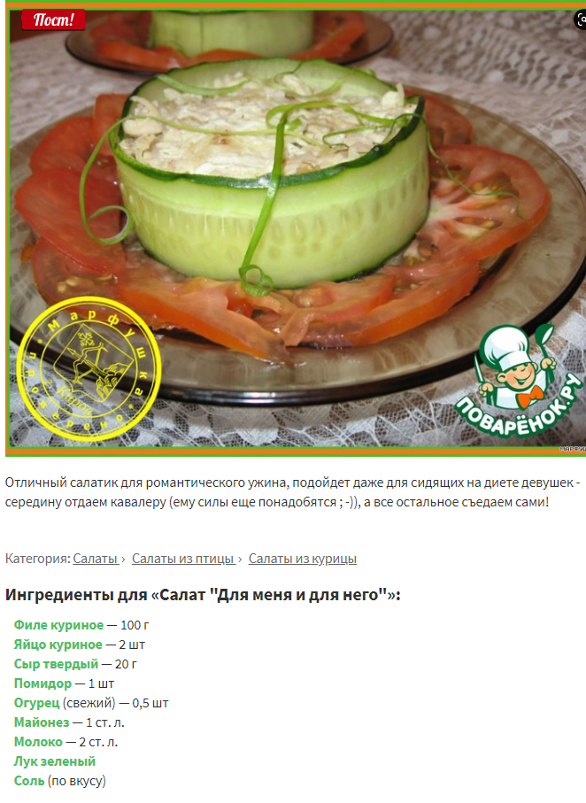 Салат "Для меня и для него" – кулинарный рецепт Подробнее