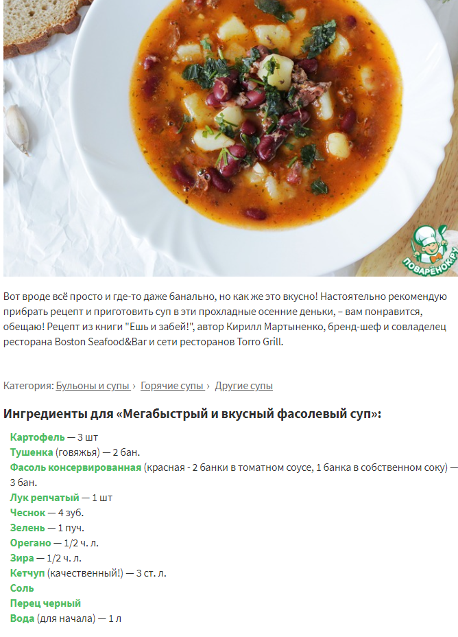 Мегабыстрый и вкусный фасолевый суп – кулинарный рецепт Подробнее