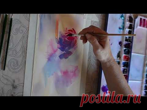 Абстракция акварелью. Интерьерная картина с цветами.
