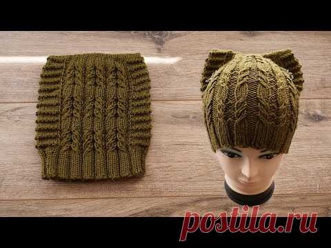 Шапочка кошка спицами 🐱 Hat cat knitting 🐈