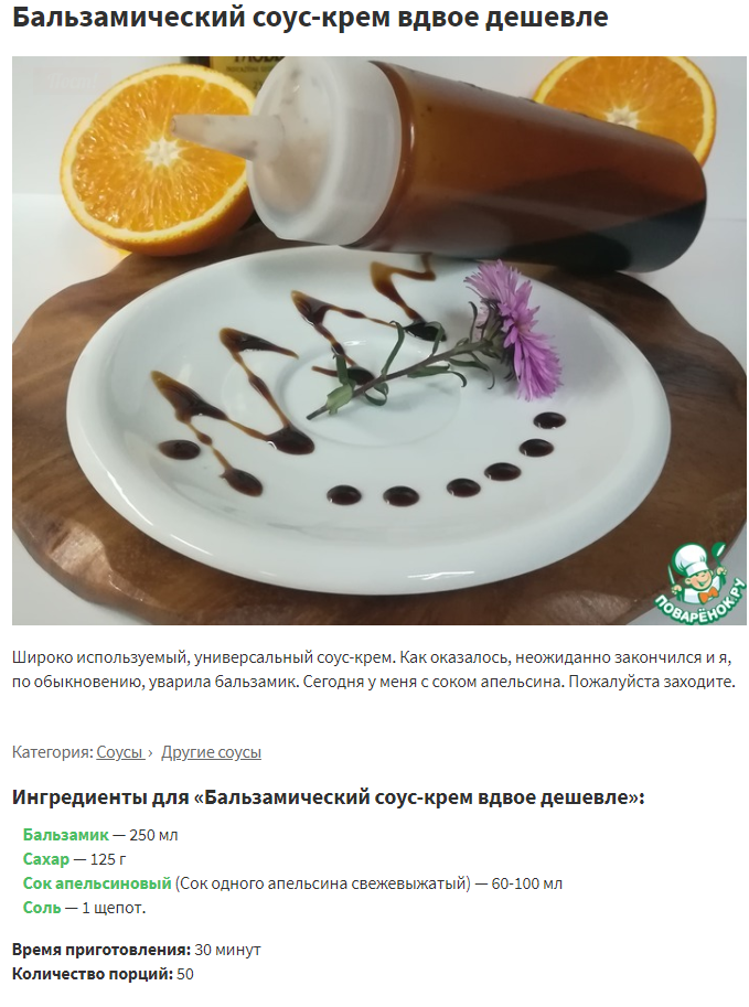 Бальзамический соус-крем вдвое дешевле – кулинарный рецепт