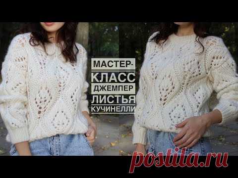 Мастер-класс джемпер / жилет спицами с крупными листьями Кучинелли! Подробный попетельный МК!