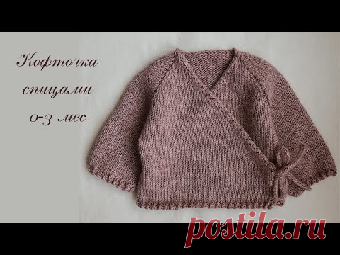 Кофточка на запах для новорожденного до 3х месяцев без швов на спицах №4. Экспресс МК